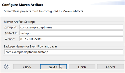 (If the Package Name does not automatically combine the two fields after you enter the Group ID, go back one panel, change one letter of the Artifact ID, revert that change, then come back to this panel.)