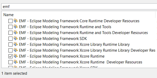 From the resulting list, select EMF - Eclipse Modeling Framework Xcore Runtime.