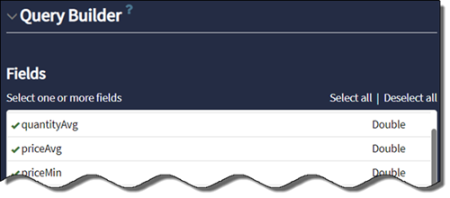 Use the Query Builder to optionally select or deselect fields to display in the card: