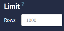 Limit the number of returned rows for your query returns. The default row limit is 1000. Override the limit or leave blank to restore the default value.