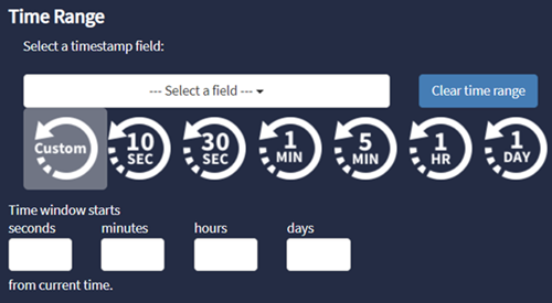 Query the data by specifying a time range, which can be in increments spanning seconds to days.