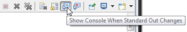 Set the Console to view the query output. By default, the Console view updates when standard output changes. To display the query results only, de-select the Console tab button Show Console When Standard Out Changes: