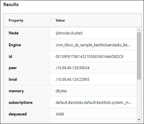 Supply the necessary parameters per command target and click . Results are shown for the Spotfire® Streaming product version.