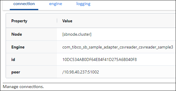 The Engine managed entity displays the top-level engine information for the selected application. Below the top-level are