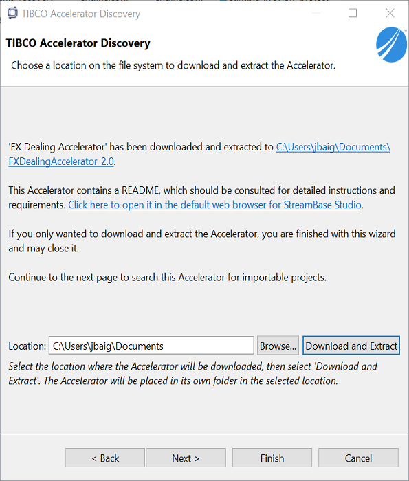 Click Finish if you only wanted to download and extract the Accelerator.