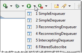 ReconnectingDequeuerlauncher. This runs the Java program of that name, which connects to the StreamBase Server instance runningSimpleServer.sbapp. The Console view reports:ReconnectingDequeuer: Connected to StreamBase at [sb://localhost/]