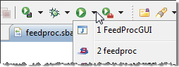Use the launcher in the Run History list to run the FeedProcGUI Java client program at the same time the StreamBase application is running. This opens a new window for FeedProcGUI.