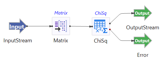 The provided StreamBase module uses the randomly generated data set consisting of variables/fields X, Y, and Z which all have values ranging from 1-4. In this sample, the Matrix Operator is used to create a sliding window that keeps collecting 30 rows of data and emits the results every collected 30 rows. The Chi-square operator takes data lists as inputs and tests the null hypothesis that X, Y, and Z are independent.