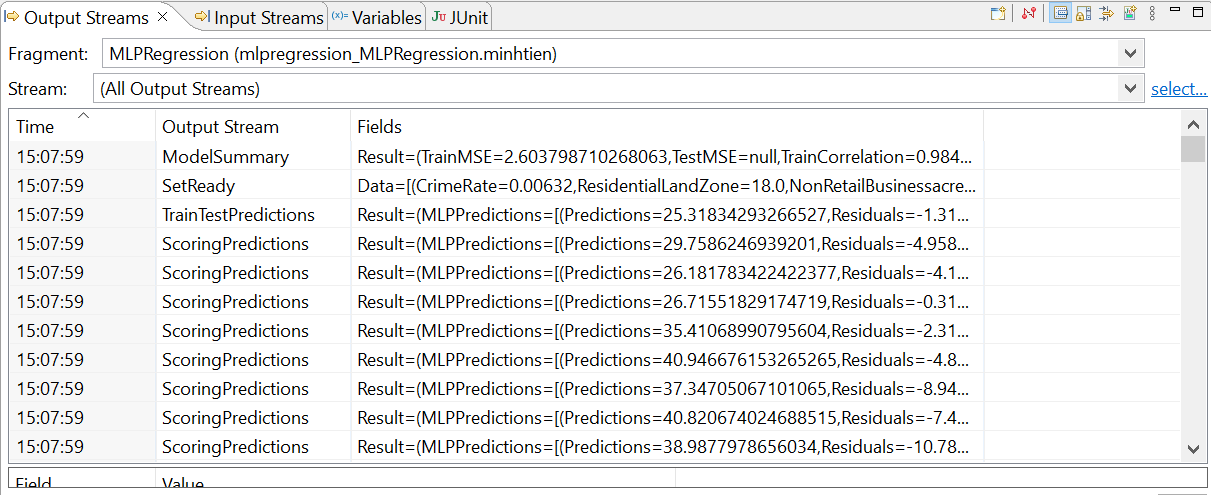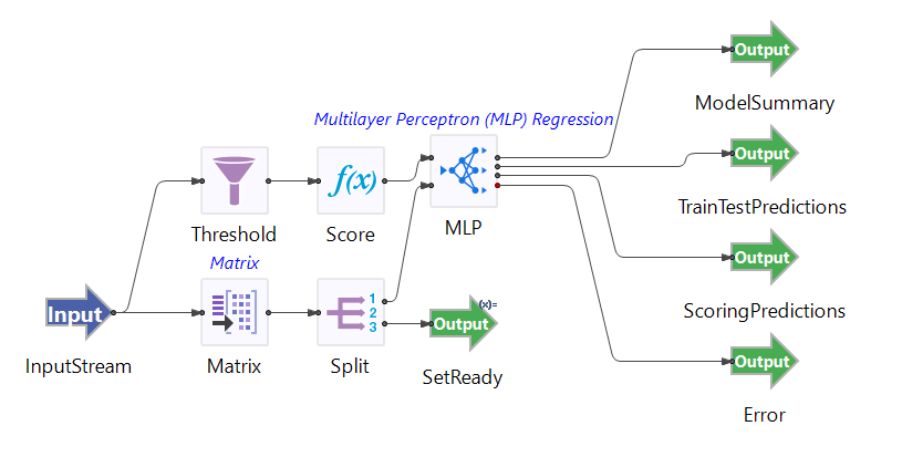 Select Multilayer Perceptron (MLP) neural network regression from the Streaming Datascience Operators category.