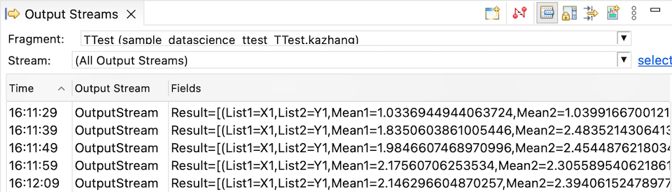This sample demonstrates the use of the Spotfire Streaming Independent Two Sample T-Test operator. The Two Sample T-Test operators allows you to test whether or not one or more pairs of variables has equal means.