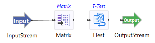 The Two Sample T-Test Operator coupled with the Matrix operator allows you to determine whether not two groups have the mean over time. For this sample, the provided StreamBase module uses simulated data from a multivariate normal distribution of four variables whose means are drifting over time. The data is sent to a matrix operator, where the data is partitioned into tumbling windows of size 100.