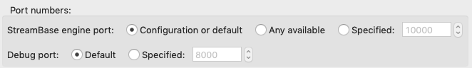 By default, StreamBase uses 8000 as the default port for EventFlow debugging. You can optionally specify a different debug port number, as required.
