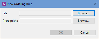 To do this, click . This invokes the New Ordering Rule dialog, where you browse your project to specify a dependency order for the desired configuration file pair.