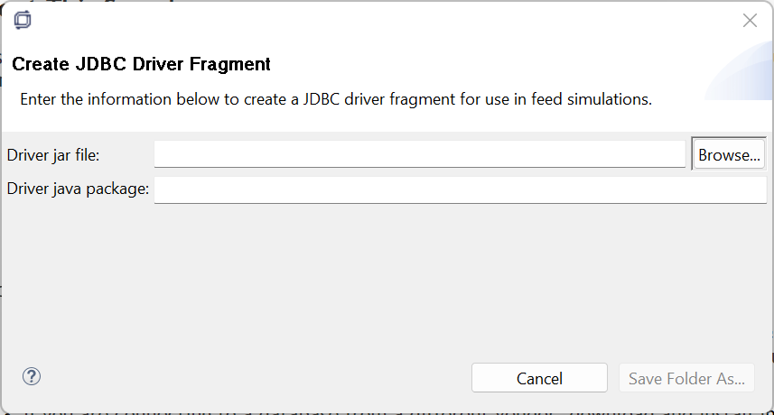 This section explains how to set up a JDBC data source to run a Feed Simulation from Studio. To run a Feed Simulation with a JDBC data source or ensure correct typechecking of EventFlow modules referring to these feed simulations, the JDBC driver to be used must be available on Studio's classpath. This is achieved by creating a JDBC driver fragment.